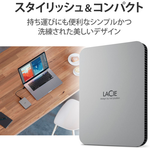 エレコム STLP2000400 LaCie 外付けHDD 2TB ポータブル Mobile Drive ムーン・シルバー