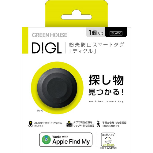 グリーンハウス GH-SMTA1MS-BK スマートタグ DIGL(ディグル) 1個入り ブラック GHSMTA1MSBK