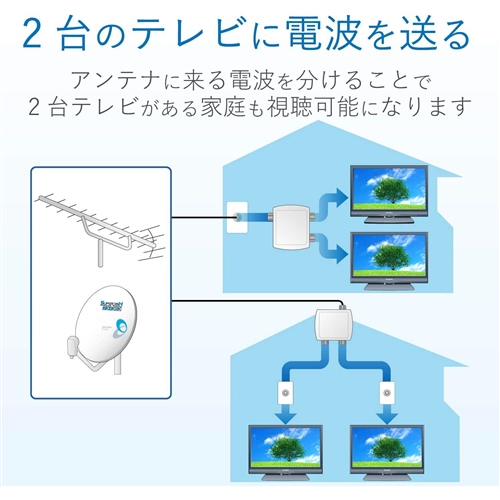●全端子通電形2分配器。テレビの電波を2つに分けます