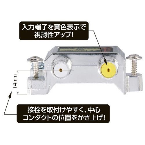 分配損失HF:4.7dB以下 VHF・FM・UHF:4.3dB以下 BS・CS:5.0dB〜9.0dB以下