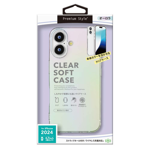 PGA PG-24CTP02AR iPhone16 Plus用 クリアソフトケース Premium Style オーロラ