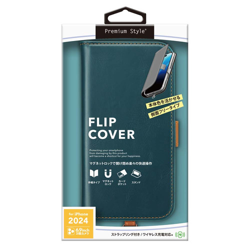 PGA PG-24DFP01BL iPhone 16 Pro Max用 フリップカバー [ブルー] Premium Style