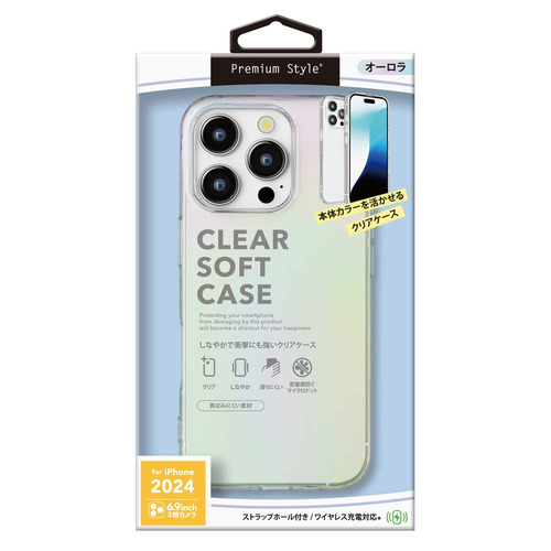 PGA PG-24DTP02AR iPhone16 Pro Max用 クリアソフトケース Premium Style オーロラ