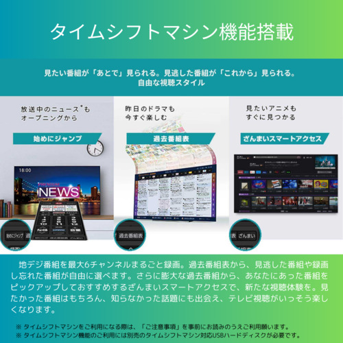 予約録画やおまかせ録画した膨大な番組から、お気に入りのタレントの出演番組や、好きなジャンルの番組を自動で分類。さらに、あなたがよく見る番組をAIが学習しておすすめ。自分では気づかなかった番組にも出会えます。録画した番組も、サムネイルで表示されるので、ネット動画と同じように見たい番組を見つけられます。18万以上のタレントやジャンルが用意されているので、お好みのものに出会えます。レグザの魅力:SNSで話題になった番組やシーンだけ、今からでも見られちゃう!>※ 「ざんまいスマートアクセス」のご利用にはインターネットへの接続が必要です。※ インターネットの接続には、通信事業者やプロバイダー(インターネット接続業者)との契約が必要です。