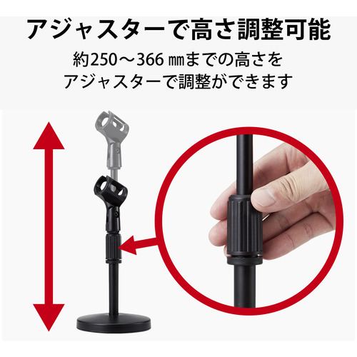 ●伸縮する支柱にマイクを装着して、お好みの高さに調節できます。