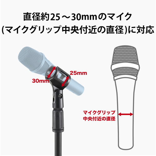 ●直径約25〜30mmのマイク(マイクグリップ中央付近の直径)に対応しています。