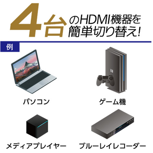 複数台の4K対応HDMI機器を切り替えてお使いいただけます。