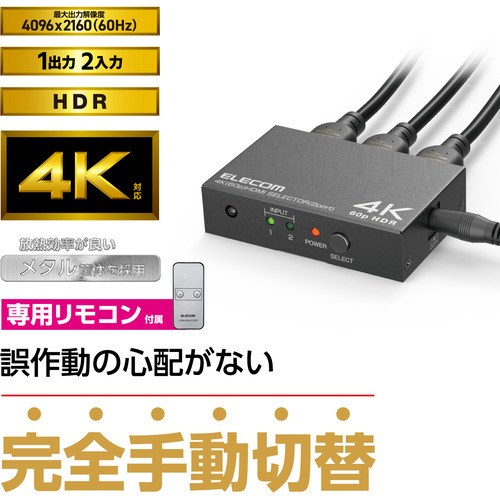 エレコム DH-SW4KP21BK HDMI切替器(2ポート) PC ゲーム機 マルチディスプレイ ミラーリング 専用リモコン付き