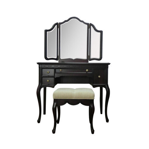 大塚家具 ドレッサー 「フルール」スツール付 DM(ダークブラウン)色