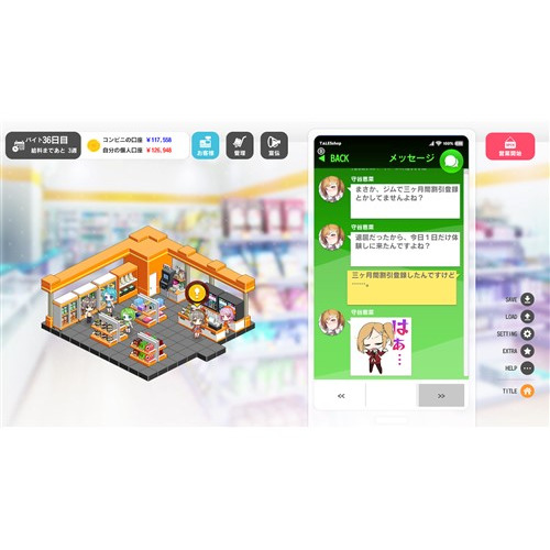 コンビニを経営しながら、ヒロインとの恋愛を成就させましょう。