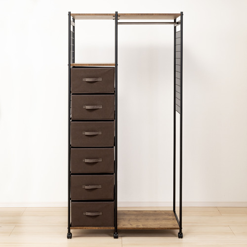 ●木目とアイアンを組み合わせたカジュアルなワードローブです。