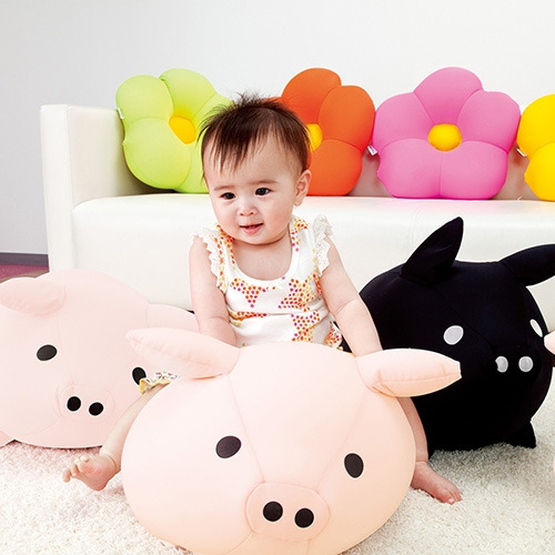 可愛らしいブタの形をしたクッション。伸縮性の高いスパンデックス生地と、パウダービーズ特有の流動性との相乗効果で、ぴったり体にフィットし、ふんわりと気持ちのいい感触が味わえます。見つめるだけでキュン!っとくるブタのクッションが疲れた身体と心を癒してくれます。