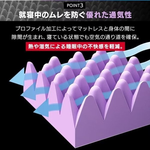プロファイル加工により、マットレスと体の間に空気の通り道が生まれ、睡眠中のムレを防ぎます。