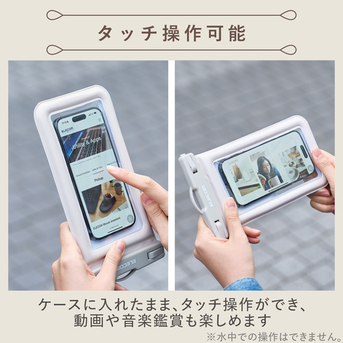 ●JIS保護等級IPX8相当の防水性能を実現する、水深約10mで30分までの防水テストをクリアしたフロート機能付きスマートフォン用防水ケースです。