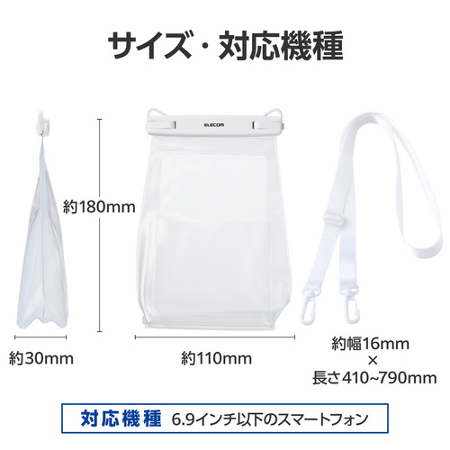 エレコム P-WPSG05WH スマートフォン用防水ケース IPX8 マチ付きタイプ
