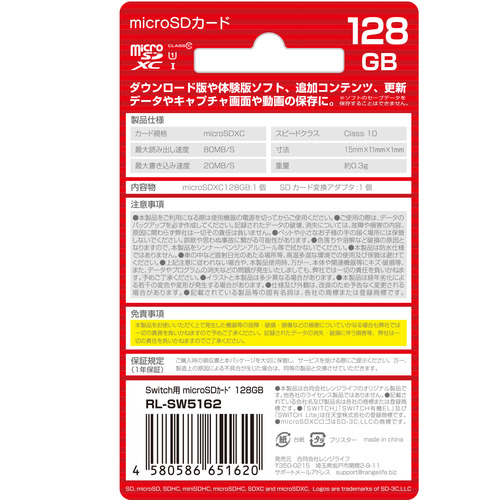 レンジライフ RL-SW5162 SWITCH/Lite用 microSDカードUHS-I対応 128GB