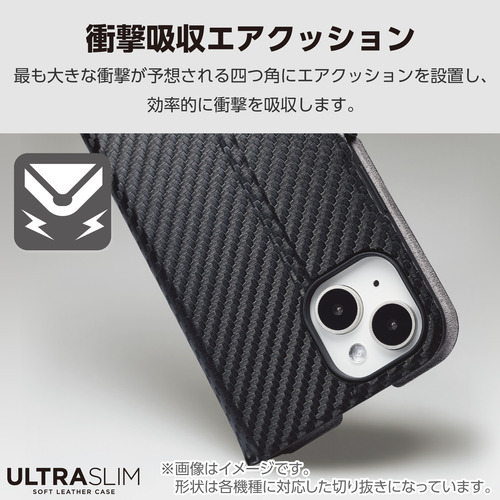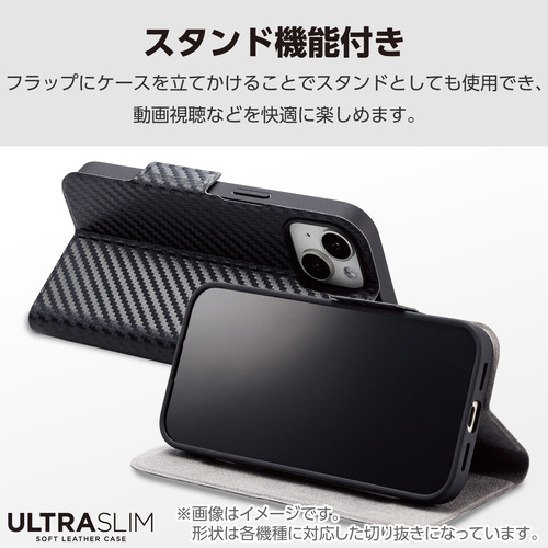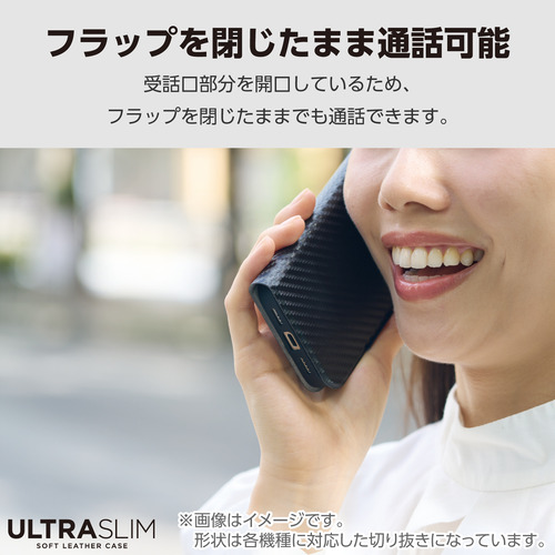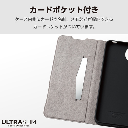 ●端末の薄さや軽さを損ねない、薄型・超軽量なウルトラスリムタイプのソフトレザーケース(手帳型)です。