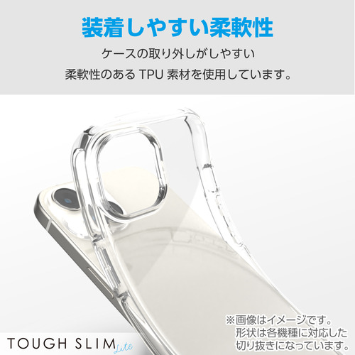 ●強じんな耐久性としなやかな弾力性をあわせ持つ、TPU(熱可塑性ポリウレタン)素材を使用した、端末のデザインが美しく際立つオールクリアタイプのTOUGH SLIM LITEケースです。
