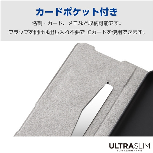 ●端末の薄さや軽さを損ねない、薄型・超軽量なウルトラスリムタイプのソフトレザーケース(手帳型)です。