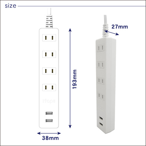 トップランド STY420-WT USB付きコンセント4個口タップ2m ホワイト