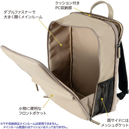 ナカバヤシ CB-283BG 厚みが変わるPCバックパック 16インチ ベージュ CB283BG