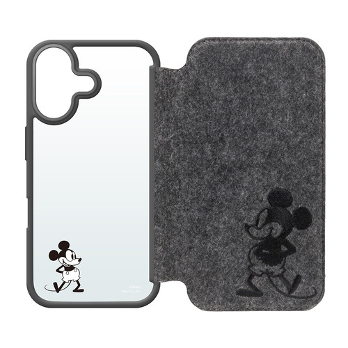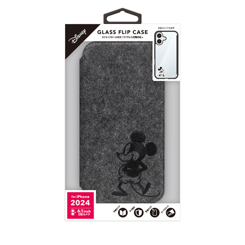 PGA PG-D24AGF05MKY iPhone 16用 ガラスフリップケース ミッキーマウス