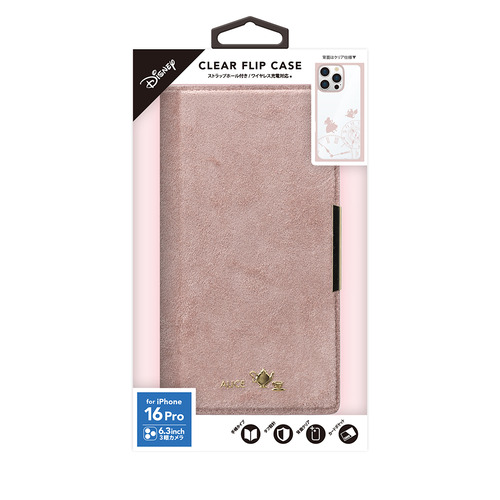 ディズニーキャラクターデザインの機能性を追求したiPhone 16 Pro用 クリアフリップケースです。