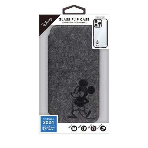 PGA PG-D24BGF05MKY iPhone 16 Pro用 ガラスフリップケース ミッキーマウス