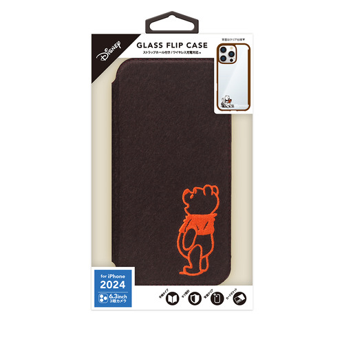 PGA PG-D24BGF06POO iPhone 16 Pro用 ガラスフリップケース くまのプーさん