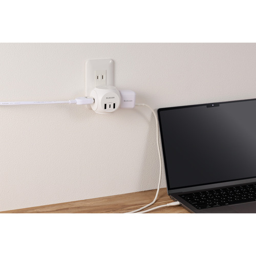 エレコム MOT-U14-33WH 球体USB電源タップ(AC3個口 スイングプラグ) スマホ・タブレット対応 ホワイト