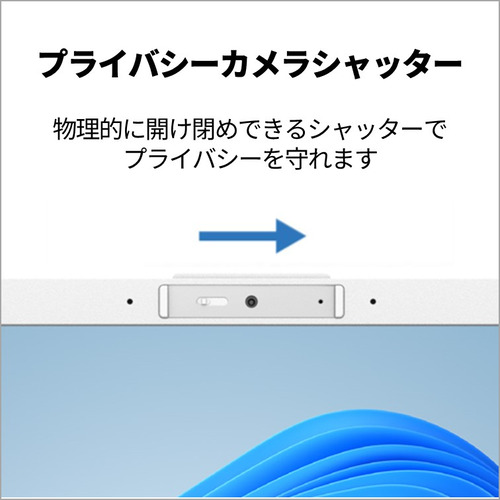 物理的にWebカメラのレンズを隠せる、プライバシーカメラシャッター搭載。動画やWeb視聴時、パソコンを使わない時には閉じておけば安心です。
