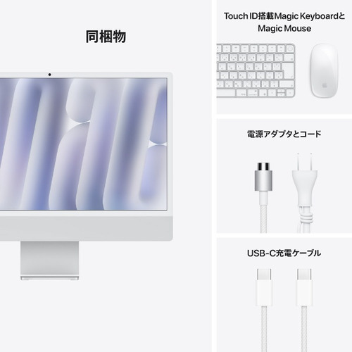 アップル(Apple) MCR24J/A 24インチiMac Retina 4.5Kディスプレイモデル Apple M4チップ 10コアCPUと10コアGPU 24GB 512GB SSD シルバー