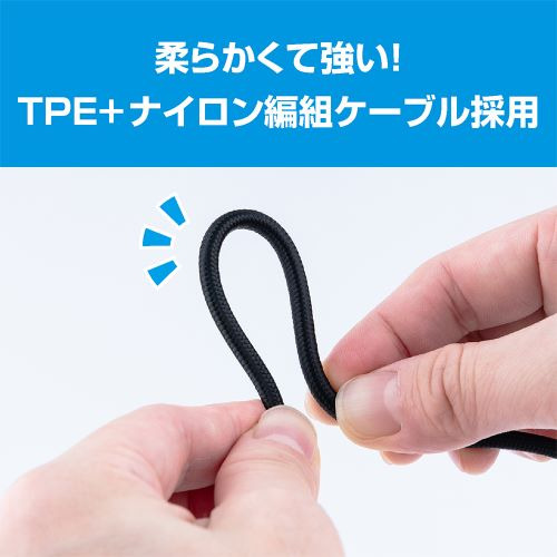 ●柔らかくて強い!TPE+ナイロン編組ケーブル採用