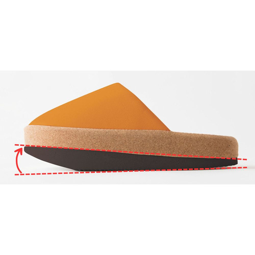体の重心を後ろに意識させることで、下腹、ヒップ、ふくらはぎにキュッと力が入り体幹が鍛えられ体のラインを整えるスリッパです。