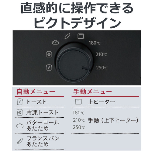 自動メニュー:4種類(トースト・冷凍トースト・バターロールあたため・フランスパンあたため)