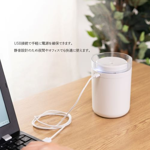 シングルミストの卓上加湿器でコンパクトでありながらしっかり潤う。※タンク内に入れる水は常温の水道水を使用してください。ミネラルウォーター、アロマオイルなどは使用できません