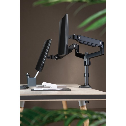 デュアルモニター用アーム 4軸タイプ ディスプレイサイズ17〜32インチと幅広く対応。角度変更が可能です。お好みの位置に設置して作業効率アップ。取り付け方法も簡単。スタンドがなくなり、スペースの有効活用もできます。