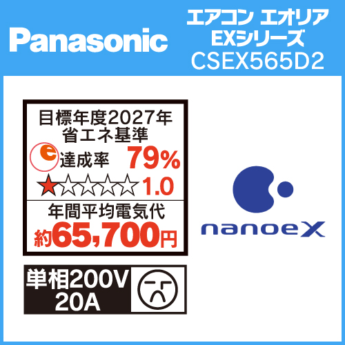 パナソニック CS-EX565D2-W エアコン Eolia(エオリア)EXシリーズ (18畳用) クリスタルホワイト