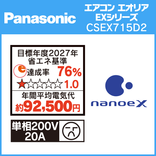 パナソニック CS-EX715D2-W エアコン Eolia(エオリア)EXシリーズ (23畳用) クリスタルホワイト