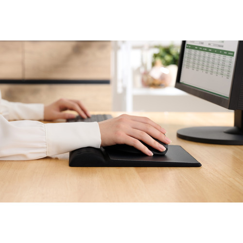 ●リストレスト部には優しく手首にフィットする低反発ポリウレタンを採用。左右の動きにも柔らかく対応し、長時間のパソコン作業でも手首が疲れにくいのが特長です。
