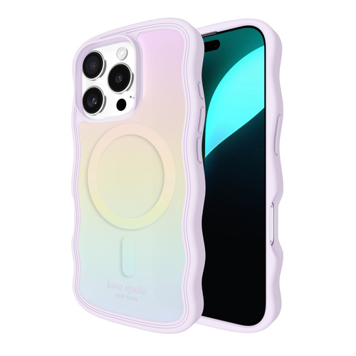 ケイト・スペード ニューヨーク KS054434 Wavy MagSafe iPhone 16 Pro用ケース Opal Iridescent クリア・パープル系