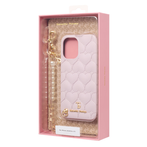 Samantha Thavasa STLPKWPHSIP2461 Wrap Case Heart Quilting with Hand Strap for iPhone16 Lavender Pink