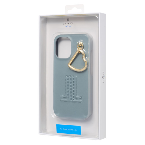 LANVIN en Bleu LBLBEWPHCIP2461 Slim Wrap Case with Heart Charm for iPhone16 Light Blue