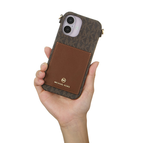 MICHAEL KORS MKWSBRWPWIP2461 Wrap Case Pocket with Strap for iPhone16 Brown