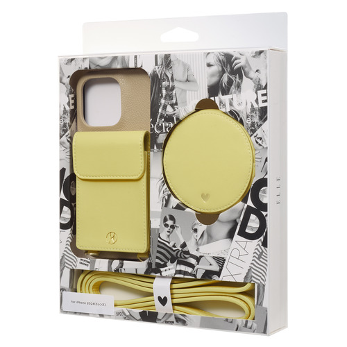 ELLE ELYLBWPWPIP2463P Wrap Case with Pouch for iPhone16 Pro Beige×Yellow