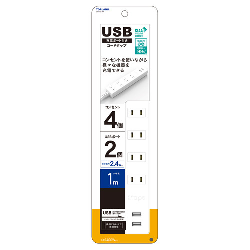 エレコム T-U06-1ACWH 電源タップ USB タップ 直挿し コンセント 1口 Type-C ×1 USB-A ×1 雷ガード ホワイト