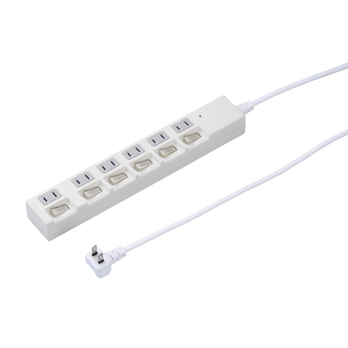 ナカバヤシ OAT-KS6P20W 耐雷サージスイッチタップ 6個口 独立スイッチ搭載 ケーブル長さ 2m ホワイト