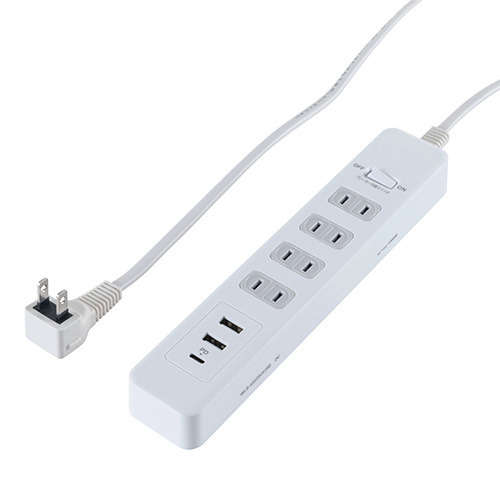 ELPA WLKRE3222UCW ランプレススイッチ付きUSBタップ 3個口 USB-Ax1 Type-Cx1 PD対応 2m