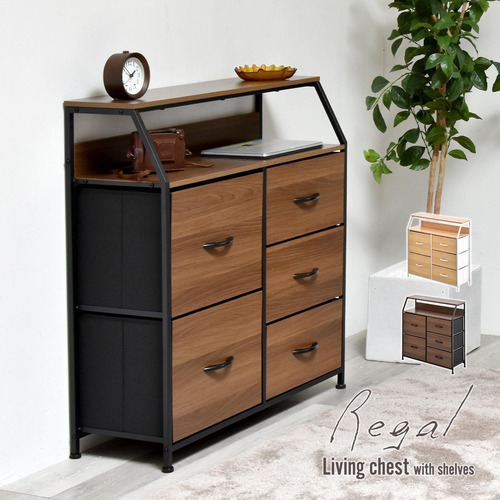 B.Bファニシング 棚付きリビングチェスト Regal ハイタイプ 引き出し5杯 幅84.5cm メラミン天板 ダークブラウン ONLS0388MODBR