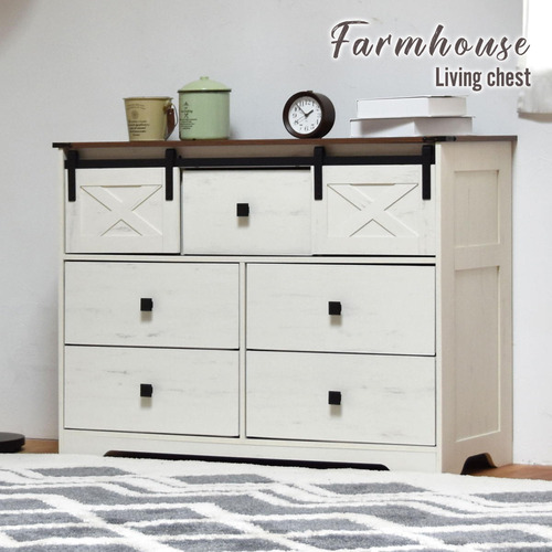 B.Bファニシング スライドドア付きチェスト3段 Farm house ワイドタイプ 幅100.5×奥行41×高さ74.5cm ダークブラウン ONLS0390MODBR